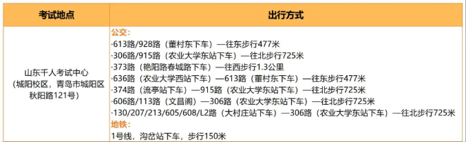 本次考试青岛考区考点设在山东千人考试中心城阳校区(青岛市城阳区秋阳路121号)。